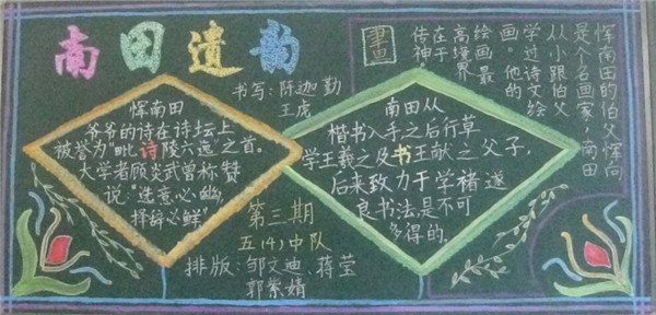 本期板报能围元旦、南田精神以及中国梦、八礼四仪的精神寻找资料,进一步激发了队员从小关心国家大事、学南田精神,文明成长的积极心态。三年级大部分中队及四年级的板报进步显著,值得表扬!具体获奖情况如下:(一等奖加3分,二等奖加2分,三等奖加1分)