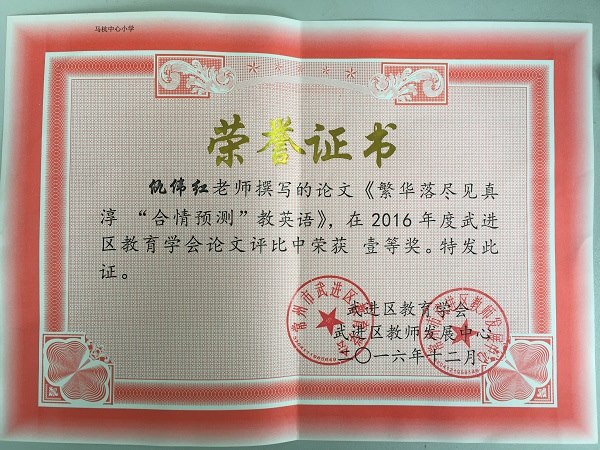 学会 论文区一等奖(仇伟红,2016年12月)