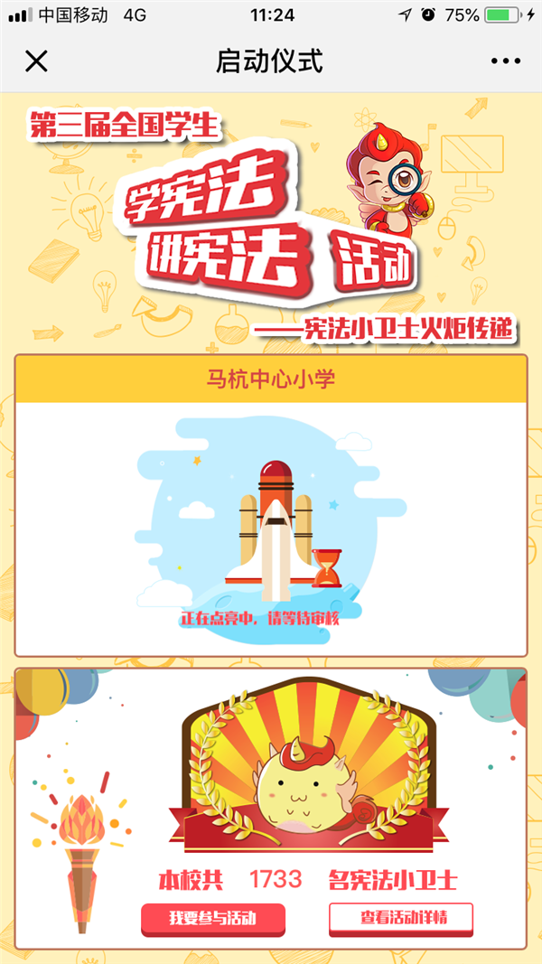 马杭中心小学宪法小卫士火炬传递活动参与率99%