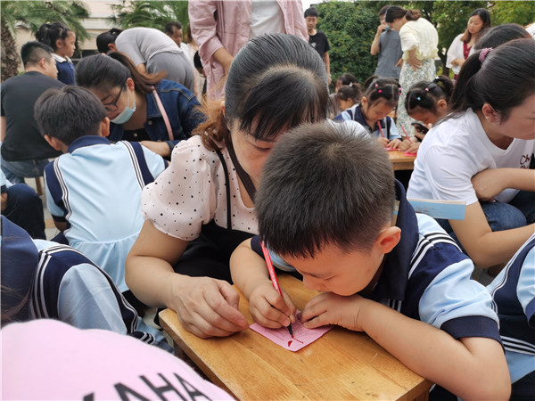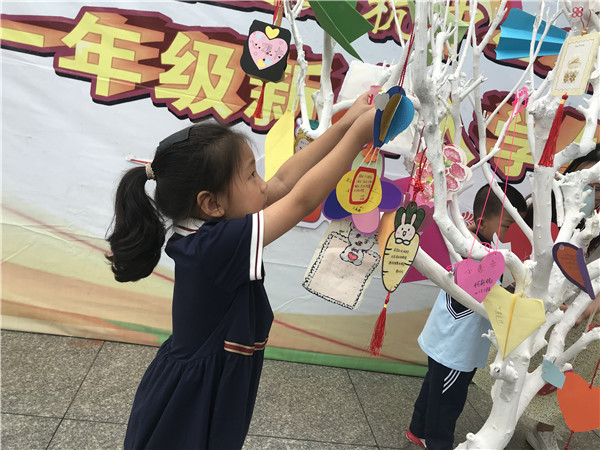 2020年9月11日,秋风送爽马杭中心小学288位小朋友精神抖擞,兴高采烈走向佇歌广场,和老师、家长、大哥哥姐姐们一起进行了一年级新生入学仪式暨知福礼活动, 活动开始校琵琶队带来开场表演《送我一枝玫瑰花》,悦耳的琵琶声回荡在校园的每个角落,赢得了大家的阵阵掌声。接下来盛永泽副校长敲响了鲜红的大鼓,用“击鼓鸣志”来激励同学们,每一声洪亮的鼓声都孕育着一个崭新的希望。盛校长还向全体新生致辞,欢迎他们来到马小这个大家庭,向大家介绍了马小校史及近几年的发展情况,希望能和家长共同携手、并肩教育,培养好我们的孩子,用责任与爱心、真诚与理解共同筑起孩子们通往成功的幸福之路! 古人云,童蒙之学,始于衣冠;先正衣冠,后明事理。同学们先从上至下整理着装,保持良好的精神面貌向一年级的所有老师鞠躬行拜师礼,感谢老师言传身教,自今日起,以师志为己志,施志行道,以谢师恩。 朱砂启智,古语称“开天眼”,用朱砂在学子们的额头正中点上红痣,希望孩子们今后眼明心亮,能好读书、读好书。此环节由盛校长与各班辅导员老师为孩子们点朱砂“启智”,寓意开启智慧,共同描绘幸福的明天! 马小的核心理念就是“从幸福走向幸福”,开启幸福智慧之后,钟超文老师示范写“福”字,还向学子们介绍“福”字的由来及寓意,并让学子们一起跟着描“福”。随后,一年级新生代表是优洋小朋友带领大家领宣了马小十好习惯。 同时今天也是书院课程开课的日子,每班语文老师上台为学生赠送了书籍和阅读存折,希望读书能成为一种时尚,让学习成为一种习惯,照亮孩子们的世界,丰富孩子们的梦想。 小小的心愿卡,承载着孩子们大大的梦想,仪式的最后孩子们还将自己准备的心愿卡挂上了我们的心愿树!一张张天真的面容,今天的仪式成为了孩子们难以忘怀的美好回忆,也衷心希望每位孩子都能在马小茁壮成长,天天进步,幸福无限! (马小教育集团供稿 撰稿:徐汝斐 摄影:王烨)