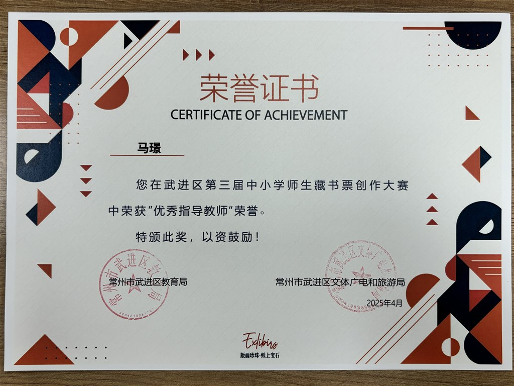 祝贺武进区第三届中小学师生藏书票大赛我校师生获奖