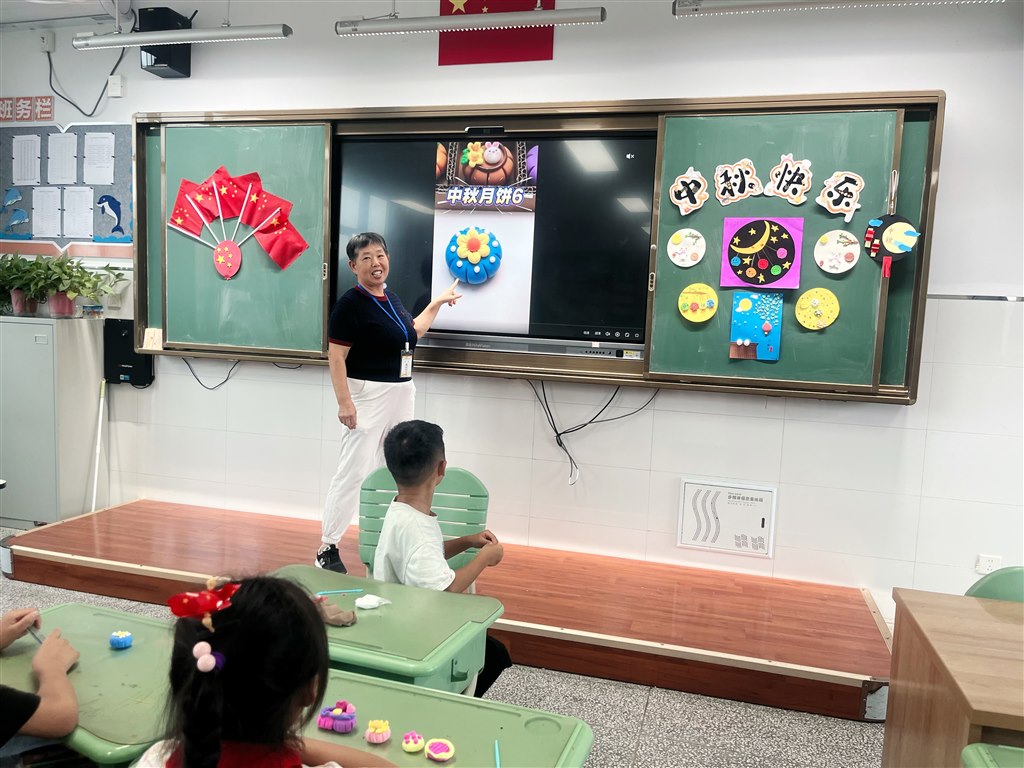 9月30日下午,“家长老师”贺琳悦外婆带着她们一家的精心准备走进课堂,绘声绘色地给同学们讲述关于关于中秋节由来的故事。同学们聚精会神地聆听,与家长老师积极互动,共同感受着这个传统节日的深厚文化底蕴。接下来,孩子们在家长老师的耐心指导下,认真制作月饼手工。经过一番努力,孩子们终于制作出了属于自己的月饼。他们看着手中的劳动成果,脸上露出了灿烂的笑容。在制作月饼的欢乐时光结束后,孩子们欢聚一堂,共同拍摄了一张张充满欢乐的大合照。这些照片不仅记录了孩子们的努力与成长,更见证了他们之间深厚的情谊。每一张照片都充满了幸福的笑容和美好的回忆。孩子们在感受节日氛围的同时,也传承着中华民族的优秀文化。