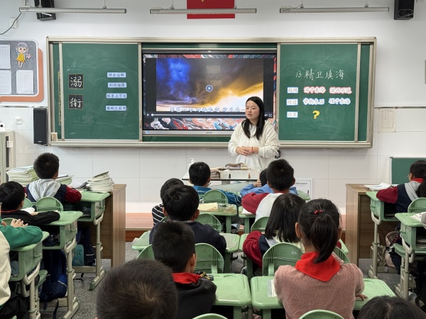 当传统神话的奇幻色彩与小学课堂的童趣教学相遇,当语文核心素养的培育与学生探索欲的激发同频共振,一堂关于神话解读与精神传承的课程便迸发出生动的活力。魏苏丽老师执教的小学四年级部编版语文《精卫填海》教研课,以其对神话文本的细腻解读与沉浸式教学手段的灵活运用,为师生们打造了一场兼具文化熏陶与语文实践的课堂盛宴。魏老师通过动画短片还原精卫填海场景、设计 “神话小剧场” 角色扮演、开展 “精卫的心里话” 创意写作,引导学生在直观感受中读懂故事脉络,在情感代入中体会精卫的执着精神,在语言表达中巩固语文要素,将神话品读与 “感受神话神奇、体会人物品质” 的单元目标深度融合。整个教学过程既保留了语文学科的人文温度,又契合低中段学生 “寓学于乐” 的认知规律,成功点燃了学生对传统神话的热爱与语言表达的积极性。