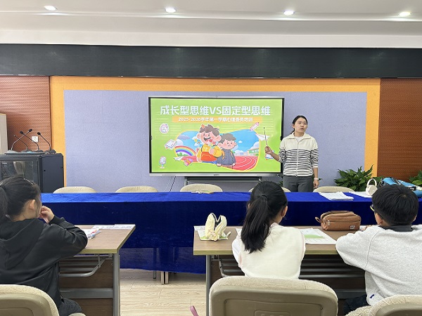 为提升班级心理委员的心理素质与助人能力,充分发挥他们在班级心理健康教育中的桥梁作用,2025 年 10 月 23 日,我校在南田楼三楼顺利开展心理委员专题培训,本次培训以 “成长型思维修炼” 为核心,助力心理委员们实现自我成长与能力提升。