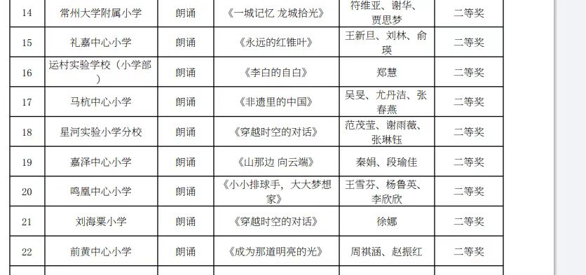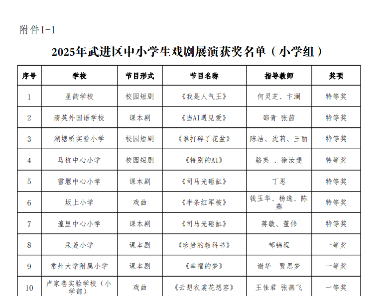 祝贺我校在武进区中小学生短剧比赛中获特等奖,在武进区朗诵比赛中获二等奖,都将代表武进区参加常州市比赛。