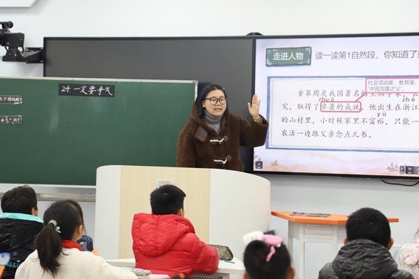 语文课堂中,四位新教师立足文本,引导学生在语言实践中感悟人文内涵。刘夏颖老师执教一年级上册《两件宝》,以趣味游戏导入,将生字教学巧妙融于课文理解,课堂生动活泼,寓教于乐;钱泽宝老师紧扣三年级上册《一定要争气》中“争气”主线,通过问题链驱动学生深入文本,在合作探究中感悟人物从自强到报国的精神升华;盛安琪老师执教四年级上册文言文《王戎不取道旁李》,以“读”为径,通过多层次朗读引导学生感知文言之美,领悟智慧哲理;芮楠老师则以六年级上册《我的伯父鲁迅先生》为抓手,以“笑”与“叹”为钥,引导学生在细节品析中走近鲁迅先生丰富而崇高的精神世界。