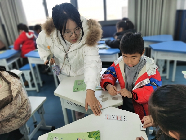 数学课堂上,李何淼老师带来了一节别开生面的《好玩的“抢10”》。她以扑克牌游戏为载体,引导学生在轻松愉悦的氛围中灵活运用“凑十”方法,锻炼计算能力与策略思维。整节课设计巧妙,充分体现了“玩中学、学中思”的教学理念,展现了数学学习的趣味性与思维性。