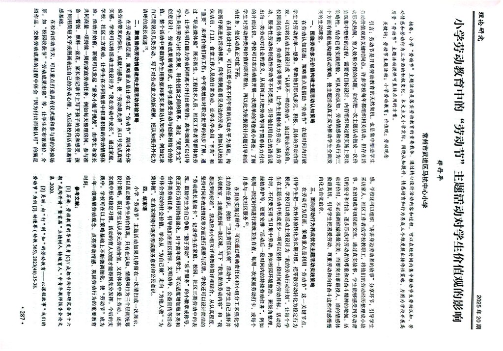 郑丹平老师发表《小学劳动教育中的劳动节主题活动对学生价值观的影响》