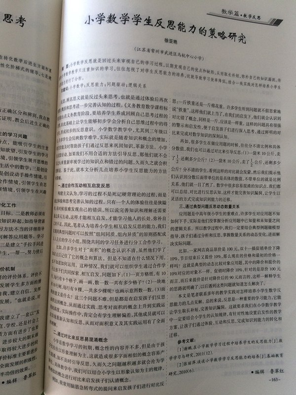 徐亚艳论文《小学数学学生反思能力的策略研究》发表于《新课程》(2016.11)